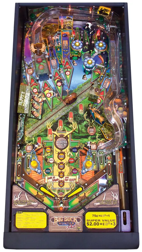 Big Buck Hunter® PRO Pinball takes you on a hunting adventure. Players are in pursuit of wild game, such as elk, moose and rams, while a motorized big buck moves swiftly across the forest-like playing field. Strike the buck with the pinball and start multiple ball action.