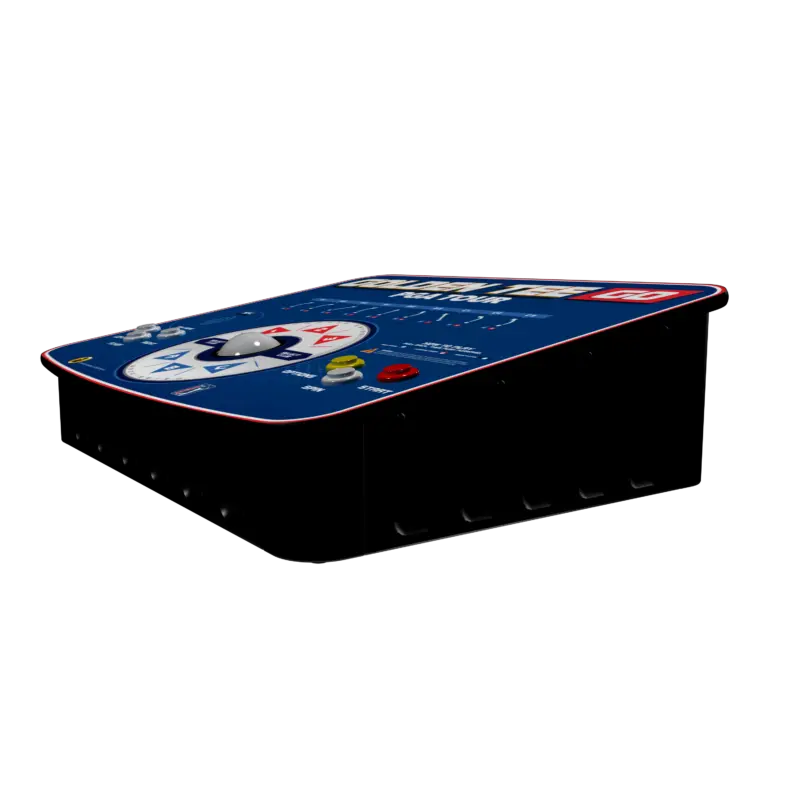 Golden Tee is the game you have come to love for over 30 years but now it’s available in a portable, lightweight cabinet with HDMI output! It has the same, full-size, controls as the full game with the Authentic Golden Tee track ball.