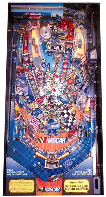 The NASCAR pinball machine is based on the popular sport of stockcar racing. It is a fast-paced machine with lots of action!