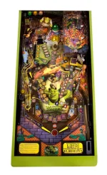 The SHREK pinball machine’s main feature is Donkey’s mini-playfield, a small pinball playfield that sits in the upper right hand corner. It has mini-flippers that the player controls with the regular flipper buttons when the game is in ‘Donkey mini-playfield’ mode. The mini-playfield has ramps and targets to shoot at while an actual Donkey figurine spins in front of the mini-playfield.
