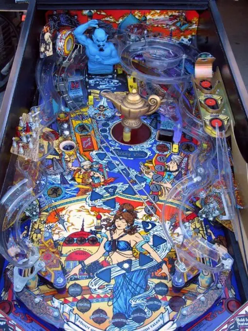 Tales of the Arabian Nights is a 1996 pinball machine produced by Williams. The game is based on the stories of One Thousand and One Nights and features a blue jinn. The marketing slogan is “Your Wish is Granted”.